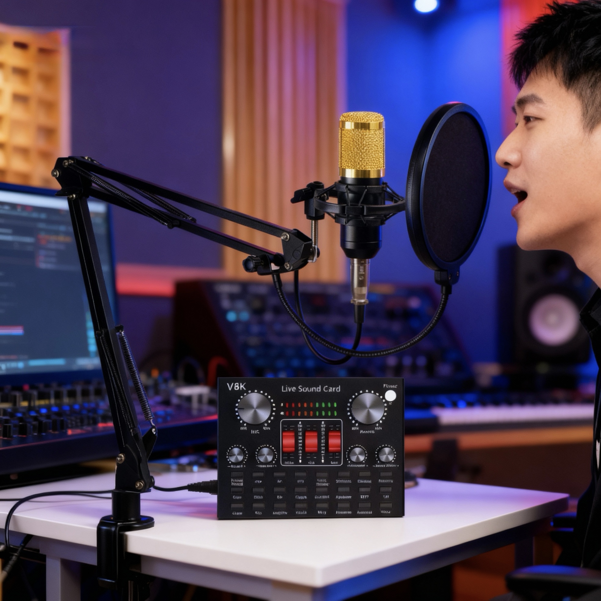 کارت صدای V8K یکی از محبوبترین کارتهای صدا برای کاربران خانگی و تولیدکنندگان محتواست. این کارت صدا با داشتن دکمههای افکت و کنترل صدا، تجربهای جذاب و حرفهای به شما میدهد.
